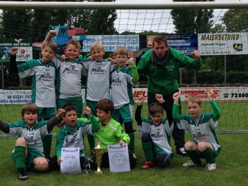 Am Donnertstag fuhr die F-Jugend zum Turnier nach Brandenburg. Die Vorrunde wurde in drei Gruppen mit je 5 Mannschaften ausgespielt. In unserer Gruppe B, spielten wir gegen Borussia Brandenburg 1:0, BSC Rathenow 3:0, Flathow 0:0 und gegen die 2. Vertretung vom Gastgeben Süd 05 6:0. So standen wir als Gruppensieger unserer Staffel fest und mussten gegen den Gruppenzweiten der Gruppe A im Viertelfinale antreten. Der Gegner hieß Stahl Brandenburg. Das Spiel hatte kaum begonnen, als Hannes uns in der 1. Minute auf die Siegerstrasse brachte und zum 1:0 verwandelte. Die Mannschaft ließ dem Gegner kam Raum und nutzte selbst Ihre Chancen zum Entstand von 3:0. So stand man schon im Halbfinale wo man auf Fortuna Babelsberg traf. Die Jungs hingen sich noch mal voll rein und kamen nach großem Kämpf zu einem 3:1 Erfolg. Jetzt hatte man schon das Maximalziel übertroffen und alles andere war nur noch Zugabe. Denn im Finale trafen wir auf dem Gegner Füchse Berlin. Sie gewannen bis dahin alle Spiele sehr deutlich und unsere Jungs konnten im Halbfinalspiel des Gegners ( 9:0 ) sich davon überzeugen, dass dies wohl die schwierigste Aufgabe werden sollte.