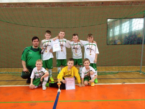 Viele grün-weisse Fans hatten darauf gehofft, nur wenige daran geglaubt. Als überhaupt erstes grün-weisses Volkspark-Team gelang unserer F-Jugend heute im 5. Turnier-Anlauf (!!!) endlich der ersehnte erste Sieg gegen RB Leipzig. Aber der Reihe nach. Souveräne Vorrunde unseres heute von Oliver Kuhnert gecoachten Teams mit Siegen gegen VfL Halle 96 (2:0), Kickers Raguhn II (3:0), Oranienbaum (3:0) und einem Unentschieden gegen eine stark auftrumpfende Mannschaft von Gräfenhainichen II (2:2). Im Halbfinale konnte sich unser Team dann gegen das Überraschungsteam des Turniers aus Seegrehna am Ende doch deutlich mit 3:0 durchsetzen. So hieß es wie so oft bei den letzten Turnieren: Endspiel gegen die Roten Bullen von RB Leipzig. Zum ersten Mal überhaupt konnten Nils Schwabe und Max Beier gegen RB spielen und genossen dies in vollen Zügen. Keeper Mattis machte zudem sein bestes Turnierspiel und hielt seinen Kasten sauber. Doppeltorschütze Jeremy, der mit insgesamt 6 Turniertoren zum besten Goalgetter in der Gräfenhainicher Sporthalle avancierte, sicherte unserem Team den absolut verdienten 2:0 Finalsieg. Ein Video mit dem sehr emotionalen Schlusspfiffjubel findet ihr hier. Piesteritz spielte mit: Mattis, Ben, Tjorven, Mika, Max B., Nils S. und Jeremy. Endstand bei diesem Turnier: 1. Piesteritz, 2. RB Leipzig, 3. Seegrehna, 4. VfL Halle 96, 5. GHC II, 6. GHC I, 7. Raguhn II, 8. Raguhn I, 9. Sandersdorf, 10. Oranienbaum.