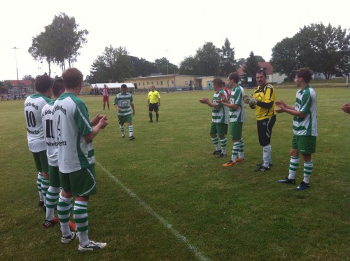Es gibt aber auch Tage an denen das alles nicht so wichtig ist, weil ein Großer Piesteritzer zum letzten Mal seine Fußballschuhe für unseren Verein getragen hat. So war es auch am letzten Samstag in Mosigkau. Der Kapitän der Zwoten Maik Trollmann hat mit diesem Spiel seine fußballerische Karriere beendet, welche mit 16 Jahren 2002 bei Piesteritz begann. Er durchlief im Volkspark die B und A-Jugend des Vereins und stieß dann sofort in den Männerbereich. Hier war er insgesamt 10 Jahre für den Verein eine wichtige Stütze. Teilweise war er auch in der ersten Mannschaft aktiv, wo er sicherlich auch sein persönliches Highlight mit dem Spiel gegen den FC Bayern München hatte. Für die Zwote war er in den vergangen Jahren nicht zu ersetzen. Er war Torschützenkönig, Mannschaftskapitän und das Herz der Zwoten. Es ist sehr schade, dass Trolli nun aus gesundheitlichen Gründen seine aktive Karriere bei Piesteritz beenden muss. Zum Abschied im letzten Spiel stand seine Mannschaft noch einmal Spalier bei seiner Auswechslung in der 90. Minute.