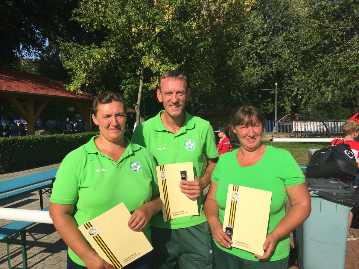 Wir danken Kerstin,Maik und Rosi für ihre geleistete Arbeit! Ohne euch wäre vieles nicht möglich. Alle 3 erhielten von Achim Golly die FSA Ehrennadel in Bronze.
