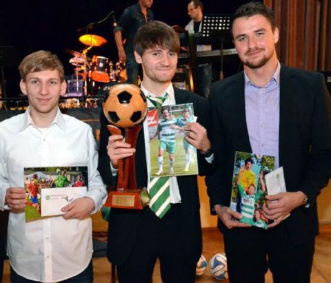 Pressesprecher Philipp Scopp gibt als Moderator alles. Mit taktischen Finten versucht der frühere Stürmer des FC Grün-Weiß Piesteritz, die Spannung am Leben zu halten. Doch die 150 Besucher der 24. Vereinsfeier haben sich längst von ihren Plätzen erhoben und feiern bereits Sekunden vor der öffentlichen Verkündigung ihren „Fußballer des Jahres“. Florian Freihube (282 Punkte) zeigt sich bei der Auszeichnung wenig überrascht. „Wenn man das ganze Spieljahr betrachtet, gab es nicht viele Kandidaten auf den Sieg“, meint der Kapitän der Verbandsliga-Mannschaft, der Verteidiger Daniel Gallin (81 Punkte) und Angreifer Dennis Marschlich (78) auf die nächsten Plätze verweist.