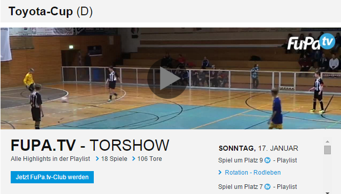FuPa.TV war am Sonntag Live beim D-Jugend Toyota-Cup. Seit heute habt ihr die Möglichkeit euch die schönsten Tore anzusehen.