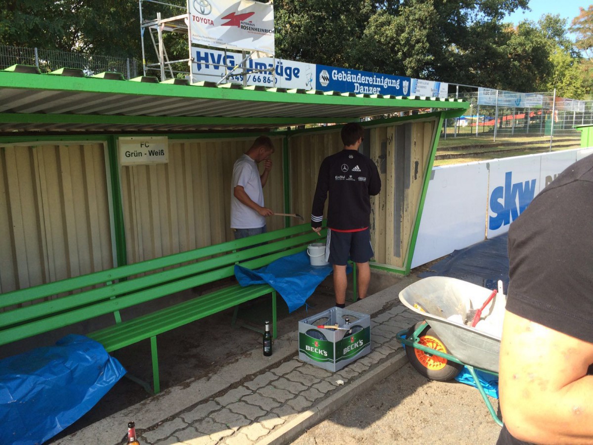 Am gestrigen Sonntagvormittag führte die 1.Männer Ihren Arbeitseinsatz im Volkspark durch. Gut gelaunt nach den ersten 3 Punkten der Saison, wurden die Auswechselbänke des Hauptplatzes, sowie die Holzumrandung am Kabinentrakt neu gestrichen. Bilder dazu gibt es in der Galerie.