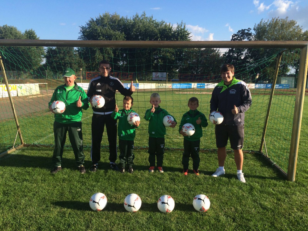 Die 1.Männermannschaft übergab am gestrigen Tag den kleinsten Kickern im Verein (unseren Bambinis) eine Spende in Form von 10 neuen Fußbällen. Trainer Andreas Lange und seine Jungs freuten sich, als die Spieler Sascha Prüfer und Maximilian Arlt die Bälle persönlich übergaben. Somit sind unsere Bambinis gut ausgerüstet um Ihr späteres Ziel, Spieler der 1.Männermannschaft zu werden, erreichen zu können.