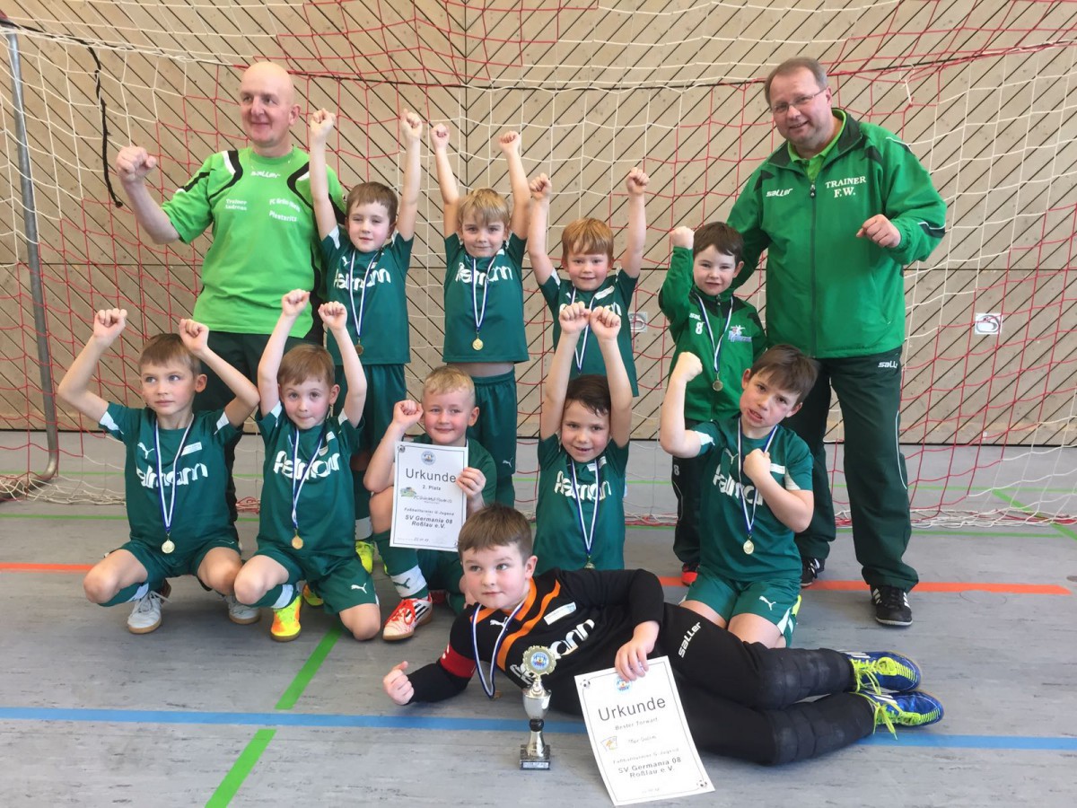 Am Sonntag war unsere G - Jugend wieder einmal unterwegs zu einem Hallenturnier. Diesmal führte uns die Fahrt außerhalb unseres Landkreises nach Dessau-Roßlau. Gespielt wurde in 2 Vierer Staffeln um den "Oilchen - Cup" des SV Germania 08 Roßlau. Nach zwei ansprechenden Leistungen gegen den Dessauer SV 97 und Rot-Weiß Zerbst, die wir beide jeweils mit 2:0 gewannen, standen die Kinder als Halbfinalteilnehmer fest. In beiden Partien schnürten Lukas Noskov bzw. Toni Lange den Doppelpack. Im letzten Gruppenspiel wartete der Turnierfavorit vom 1. FC Magdeburg auf uns. Es ging um den Gruppensieg. Aus taktischen und logistischen Gründen durfte sich Toptorjäger Vincent Neuberg bis zu dieser Partie schonen. Es sollte sich bezahlt machen. Auch er erzielte in diesem Spiel 2 Tore, welches wir mit 3:1 für uns entscheid en konnten. Im Halbfinale trafen unsere Bambinis auf die Kinder von Fortuna Babelsberg. Durch hohe Laufbereitschaft und intensiv geführten Zweikämpfen zog Grün-Weiß Piesteritz mit einem 1:0 Sieg ins Finale ein. Dieses mal hatten sich die Blau-Weißen aus der Landeshauptstadt besser auf unsere 6 jährigen eingestellt und gewannen nach der besten Begegnung des heutigen Tages, verdient mit 2:0. Nur kurz war der Ärger und Frust bei unseren Kindern, die bei der Siegerehrung stolz ihre Auszeichnungen entgegen nehmen durften. Gemeinsam mit ihrem Torhüter Max Gallin, der als bester Torhüter ausgezeichnet wurde, feierten sie ausgelassen den 2. Platz in einem gut besetzten Hallenturnier.