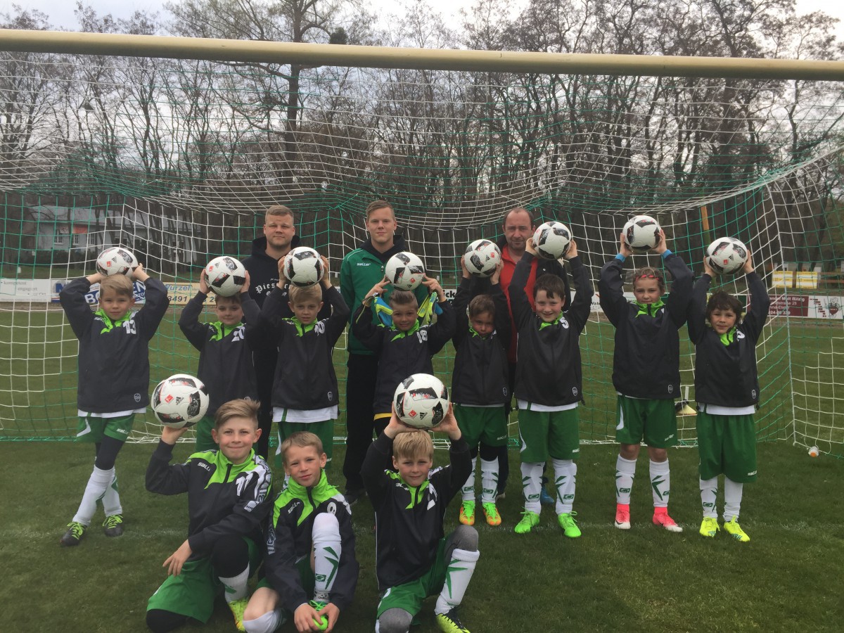Dafür bedankt sich die F-Jugend für die Spende. Verantwortlich dafür ist Norbert Ladewig und unsere Reserve Mannschaft aus der Kreisoberliga. Die Mannschaft übernahm zusammen mit Norbert die Patenschaft für alle Bälle.