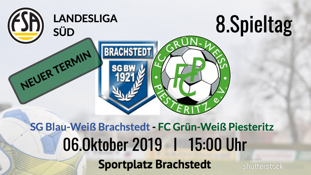 Die SG Blau-Weiß Brachstedt und Piesteritz verständigten sich auf eine Spielverlegung. Da beide Mannschaften bereits am 03.Oktober aktiv sind, hat man nun einen Tag mehr Pause. (eig Spieltermin: 05. Oktober).