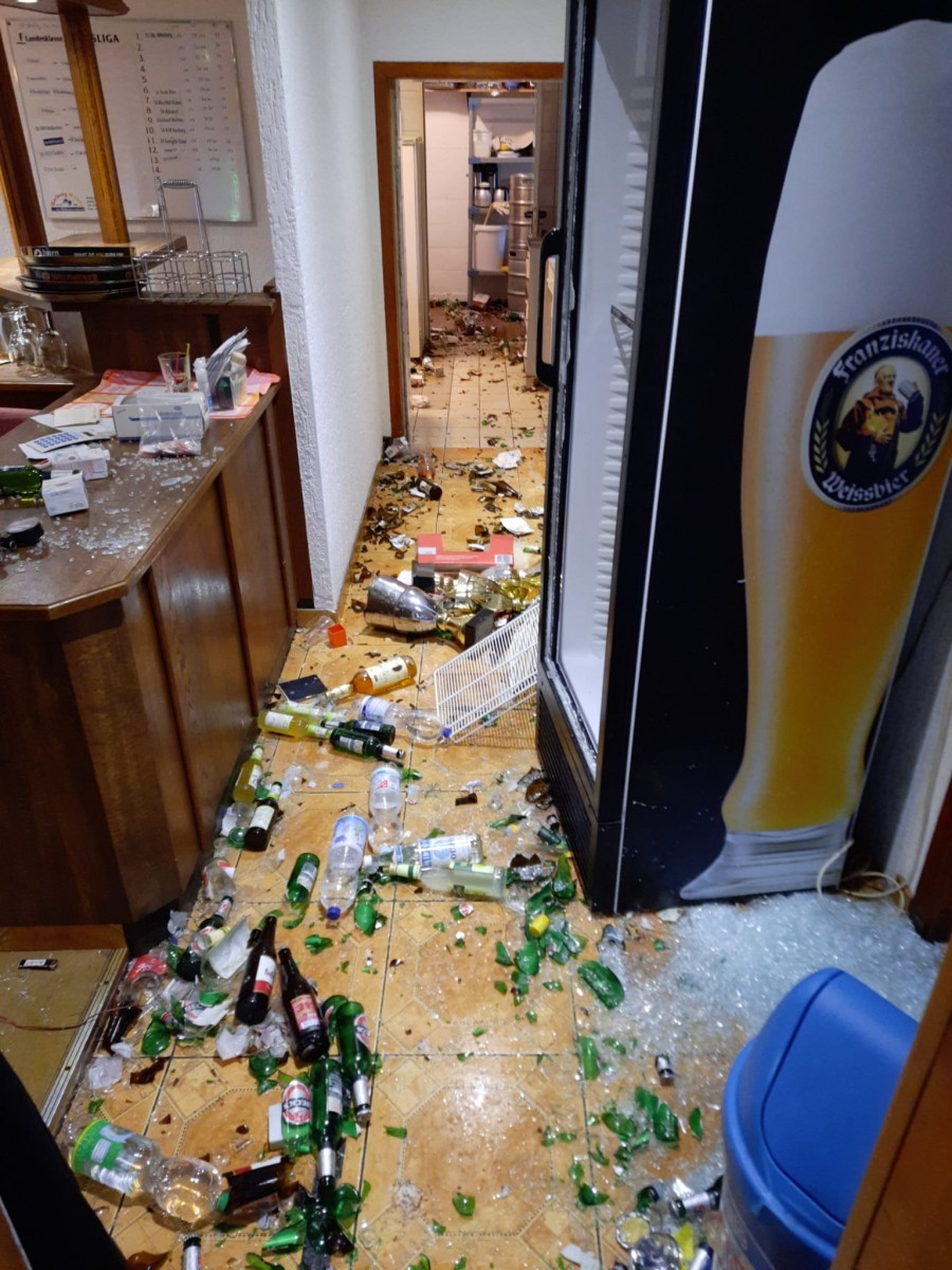 In der Nacht vom Sonntag auf Montag sind vermutlich mehrere Täter in unsere Vereinsgaststätte eingebrochen. Ihr Ziel war aber nicht der Diebstahl von Getränken und Wertgegenständen, sondern nur die blanke Zerstörungswut. So wurden Tische, Türen, Glasscheiben, Fernseher, Kühlschränke, Glasflaschen und alles was die Täter sonst noch finden konnten einfach nur mit Schlagwerkzeugen zerstört. Der Verein hat den Einbruch der Polizei gemeldet und Anzeige gegen Unbekannt erstattet.