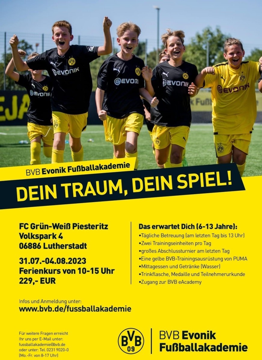 Ferienkursfreunde hergehört…! Nach dem großen Erfolg der letzten Jahre kommt das lizenzierte Trainerteam des BVB erneut zurück nach Wittenberg.