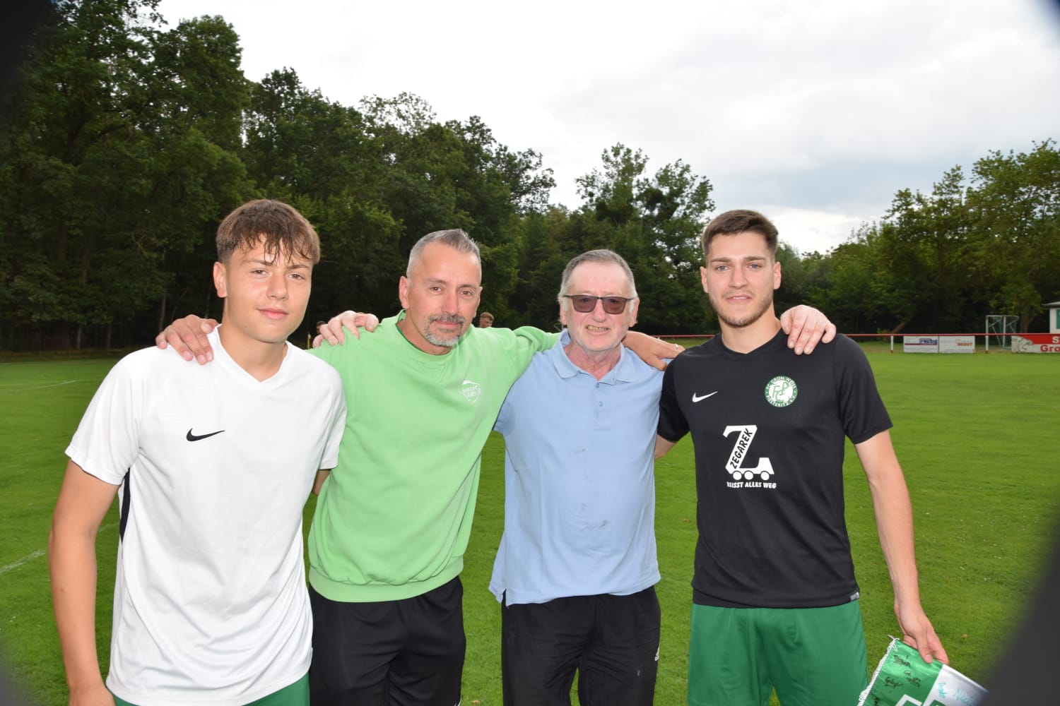 Die Beckerfamilie auf einem Rasen. Groß Rosenburg ist nicht nur die fußballerische Heimat unseres Trainers Carsten, sondern auch die des Papas, der den dortigen Rasen seit 1952 kennt. Für die anschließenden 90 Minuten wurde die Familie "getrennt", denn Papa Beckers Groß Rosenburger unterlagen mit 0:8 gegen den FC.