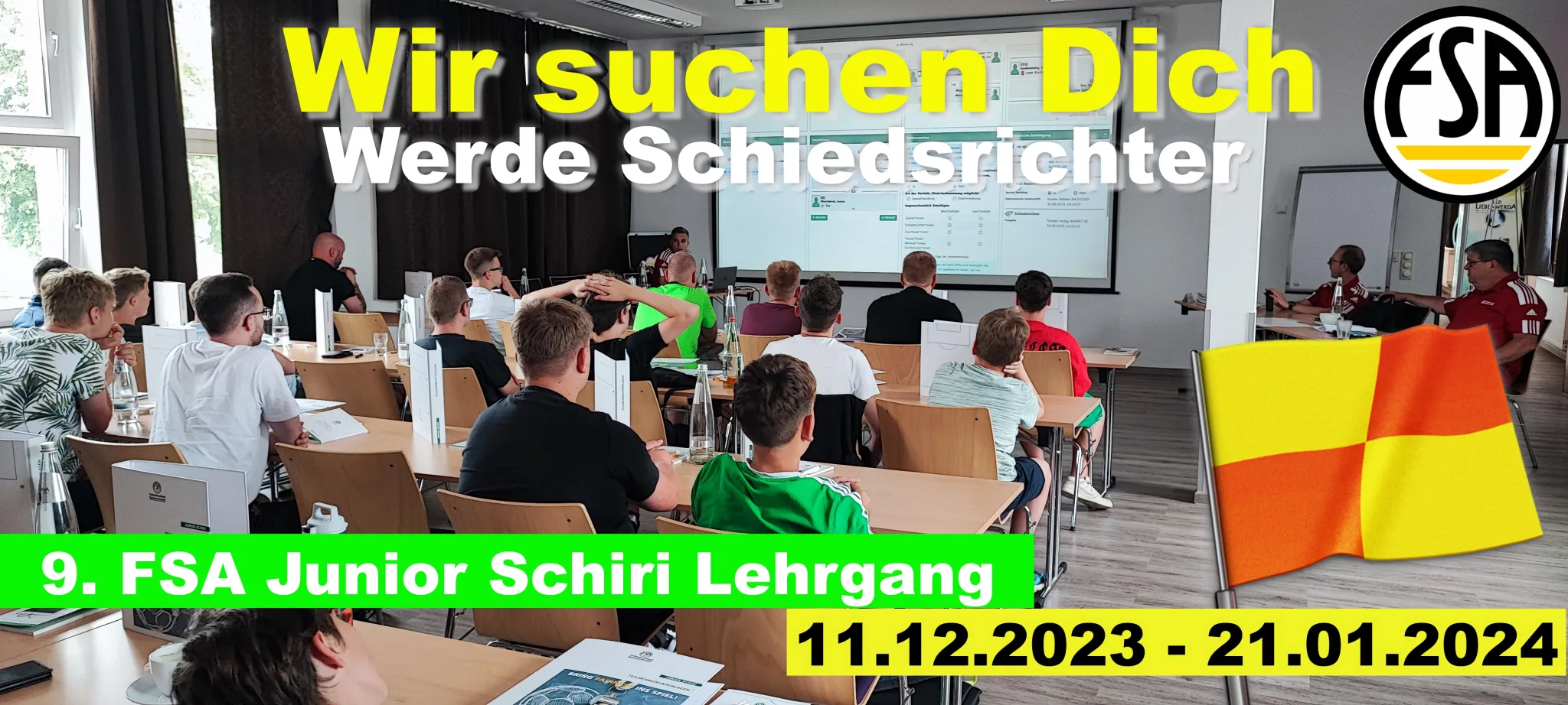 Am 11. Dezember 2023 startet der 9. Junior-Schiri-Lehrgang des Fußballverbands Sachsen-Anhalt (FSA) in Kooperation mit den ÖSA-Versicherungen Sachsen-Anhalt.