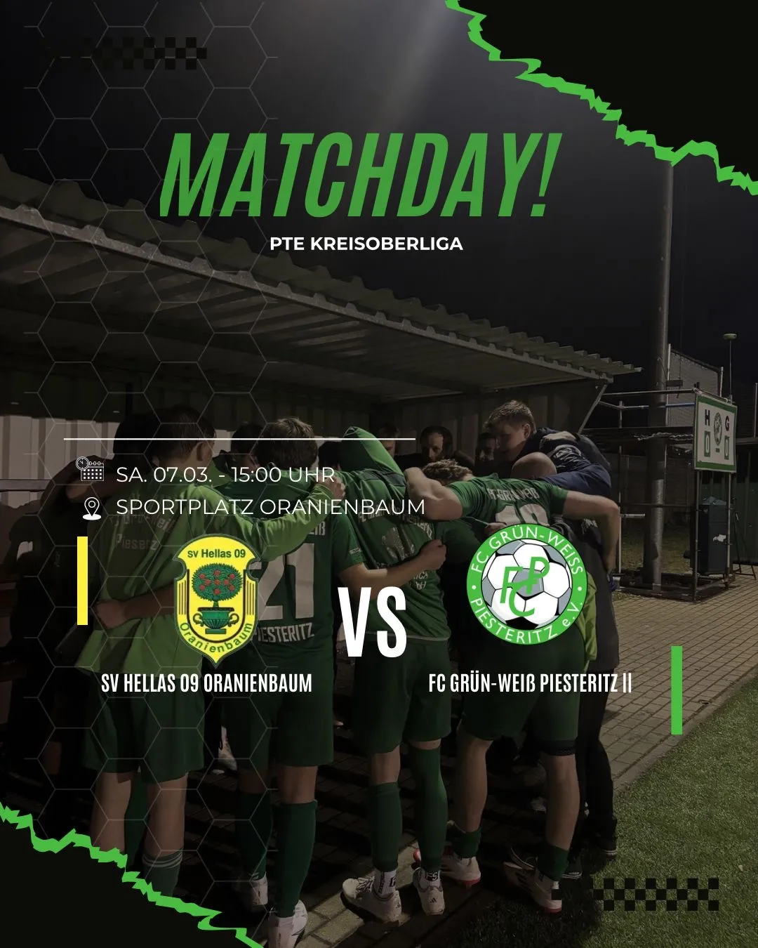 Unsere Zweite gastiert morgen bei der Hellas aus Oranienbaum. Das Hinspiel endete mit einem umkämpften 2:2, ähnlich ausgeglichen stehen die Vorzeichen für das Rückspiel. Zwar stehen die Gastgeber auf einem Platz im Mittelfeld der Tabelle, doch die Mannschaft ärgerte schon mehrfach die Teams an der Tabellenspitze!