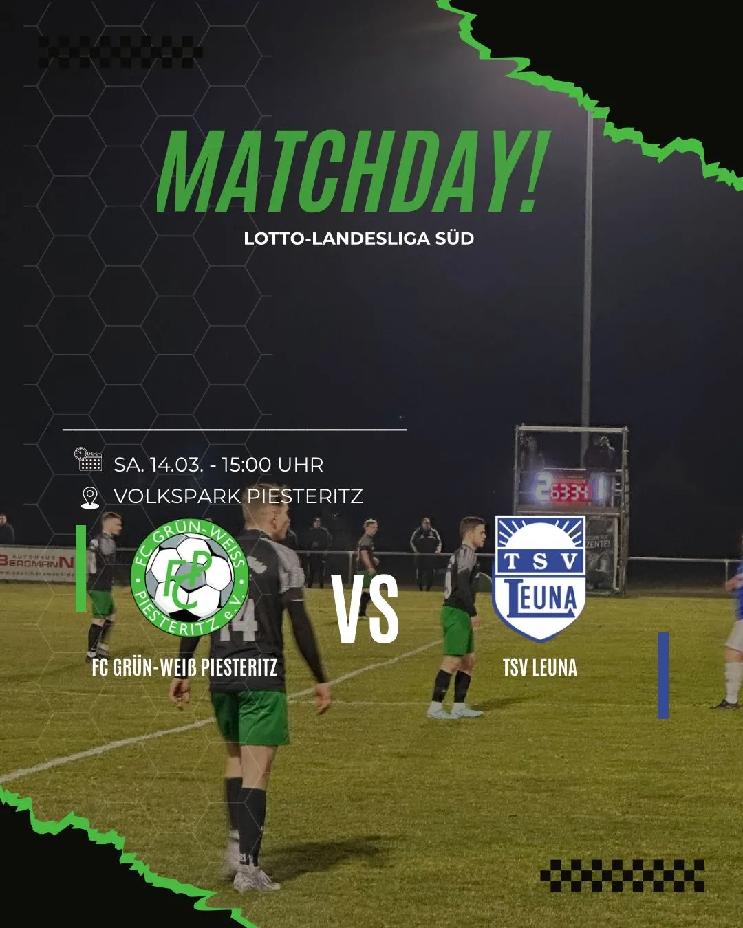Im heimischen Volkspark begrüßen unsere Jungs zum Samstagnachmittag den TSV Leuna! Der FC ist nach drei Spielen in der Rückrunde immer noch ungeschlagen und möchte diese Serie weiter ausbauen. Der Tabellensechste aus Leuna konnte bislang 4 Punkte aus zwei Spielen im Jahr 2026 sammeln. Beide Teams trennten sich im Hinspiel torreich mit 3:3, sodass man als Zuschauer auch durchaus beim übermorgigen Aufeinandertreffen auf viele Szenen in den Strafräumen hoffen darf.