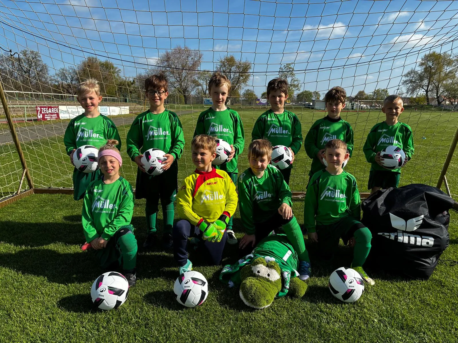 Für ein neues Feeling während des Trainings- und Spielbetriebs bedankt sich die gesamte F-Jugend bei seinem Sponsor Müller Dachtechnik für die neuen Bälle.